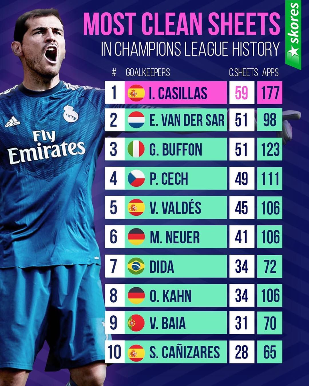 Top 10 Goal Keepers With The Most Clean Sheets In Champions League