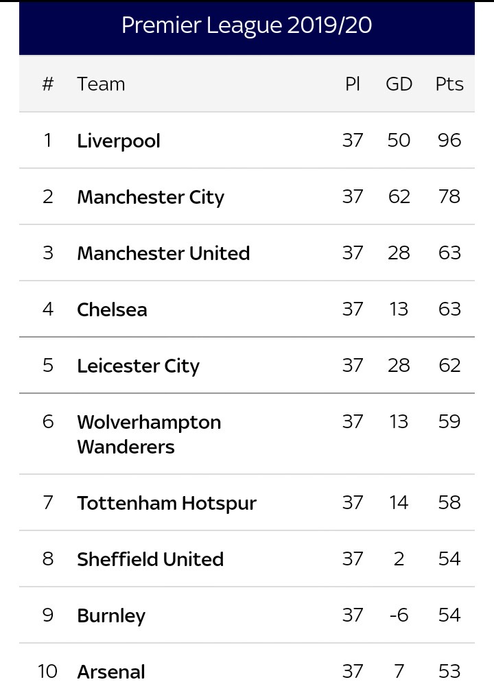 Opta S Simulated Premier League Table Sees Liverpool Break Man