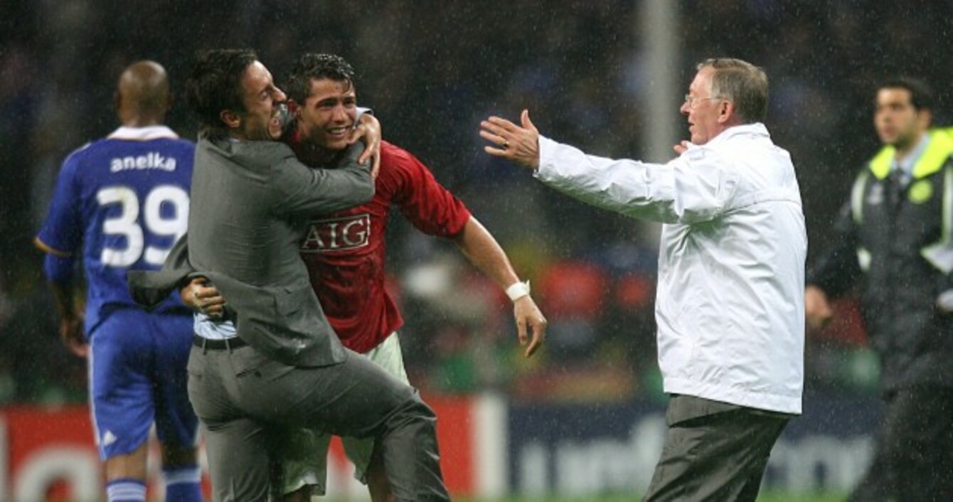 Gary Neville Of Manchester United Celebrates With The Trophy After